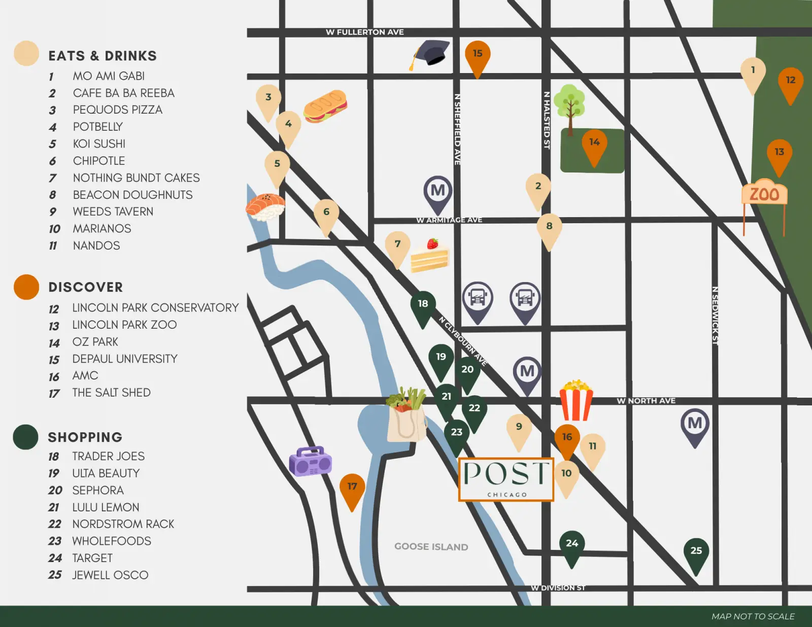 Nestled in the bustling Lincoln Park neighborhood, Post Chicago offers unmatched access to everything you need. Located at 853 W Blackhawk St, you’re just minutes from North and Sheffield Commons shopping mall, Whole Foods, Target, and beautiful parks. Commuting is simple with the nearby CTA Red Line at North & Clybourn Station and multiple bus routes including #8 Halsted and #72 North. Experience the perfect blend of city energy and neighborhood charm right outside your door.